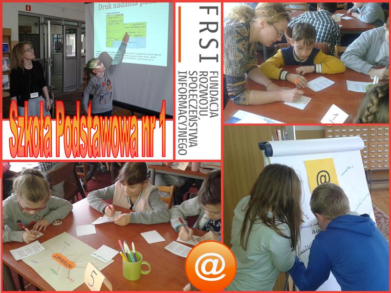 Na pocz±tku zajêæ uczniowie musieli odnale¼æ ukryte w ró¿nych miejscach kartki z literami, a pó¼niej utworzyæ z nich has³o INTERNET. Za pomoc± mapy my¶li wpisywali wszystkie skojarzenia zwi±zane z tym s³owem. Skojarzenia by³y bardzo istotne, poniewa¿ dzieci dowiedzia³y siê dziêki temu do czego wykorzystuj± komputer, co robi± w Internecie, jak spêdzaj± tam czas. Na spotkaniu dzieci próbowa³y odpowiedzieæ na pytanie czym jest karta sieciowa i do czego nam s³u¿y. W kolejnej czê¶ci zajêæ uczniowie dowiedzieli siê co to jest adres strony internetowej i co on nam mówi. Dzieci z wielkim zapa³em tworzy³y w³asne adresy stron internetowych. W trzeciej czê¶ci zajêæ przypomnieli¶my sobie w jaki sposób wys³aæ ksi±¿kê poczt± tradycyjn±. Zadanie to mia³o przygotowaæ uczniów do odpowiedzi na pytanie „w jaki sposób wys³aæ ksi±¿kê przez Internet?”. Dzieci wykaza³y siê ogromn± wiedz± i pomys³owo¶ci±. Wspólnie wys³uchali¶my fragmentu ksi±¿ki „Sk±d siê wziê³y ma³py w Internecie?” i uzyskali¶my odpowied¼ na to pytanie. Najbardziej wyczekiwanym momentem przez dzieci by³o wyja¶nienie pytania: „co maj± wspólnego ze sob± ma³py i Internet?” Z wielkim skupieniem wys³uchali kolejnego fragmentu ksi±¿ki, w którym poznali¶my historiê znaku @. Kolejnym zaskoczeniem dla dzieci by³o to w jaki sposób informacje wêdruj± przez Internet. Dowiedzieli siê, ¿e litery, cyfry oraz inne znaki zamieniaj± siê na zera i jedynki za pomoc± kodu ASCII. Najwiêksz± atrakcj± dla dzieci by³a mo¿liwo¶æ zapisywania swojego imienia kodem ASCII, a nastêpnie odkodowywania imion swoich kolegów.