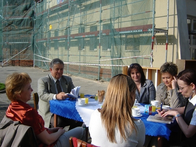 Odby³o siê ono bowiem na wolnym powietrzu, przed bibliotek± budz±c du¿e zainteresowanie przechodniów. Niektórzy na moment siê przysiedli, tak jak to zrobi³ Starosta Choszczeñski Pan Roman Lubiniecki, inni zadeklarowali chêæ sta³ego przy³±czenia do naszego grona.