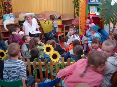 W rolê bajarki wcieli³a siê bibliotekarka - Ewa Zajkowska, która czyta³a dzieciom bajki: „Czarownica Tekla i jej przyjaciele”, Pinokio” i „Brzydkie kacz±tko”. Po opowie¶ciach bajarki dzieci bawi³y siê w K±ciku Malucha, zwiedza³y bibliotekê, a na zakoñczenie spotkania otrzyma³y s³odki poczêstunek.