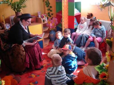By³y to przedszkolaki z choszczeñskiej „jedynki”, którym Bajarka przedstawi³a bajkê „Wilk i siedem ko¼l±tek”. Dzieci dowiedzia³y siê po co ludzie chodz± do biblioteki, po czym zwiedzi³y ró¿ne jej dzia³y. Na po¿egnanie otrzyma³y s³odk± niespodziankê.