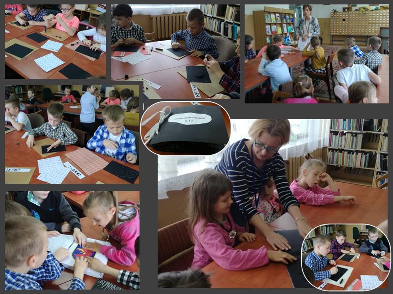 Na spotkaniu uczniowie mogli spróbowaæ odczytaæ litery i obrazki z ksi±¿ki za pomoc± dotyku, wyobraziæ sobie ¶wiat Tomka, a tak¿e stara³y siê wczuæ w sytuacjê osób niewidomych poprzez poruszanie siê z zawi±zanymi oczami czy rozpoznawanie przedmiotów za pomoc± dotyku. Oprócz tego zapozna³y siê z alfabetem Braille’a zapisuj±c i czytaj±c swoje imiona. Nasi go¶cie stworzyli w³asn± „Czarn± ksi±¿kê kolorów” za pomoc± czarnej plasteliny.