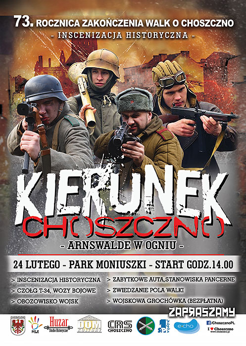 Inscenizacja historyczna pt. „Kierunek Choszczno 73. – Arnswalde w ogniu” odbędzie się 24 lutego 2018 r.(sobota) o 14.00 w Parku Moniuszki w Choszcznie z okazji 73. rocznicy zakończenia walk o nasze miasto.
