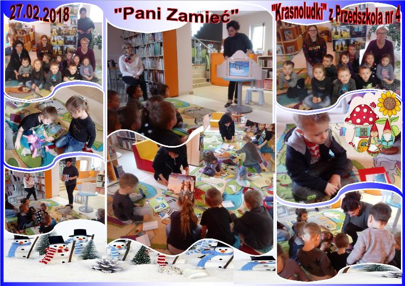 „Zimowe spotkania w Bibliotece” dobiegły końca. W miesiącu lutym odbyło się 8 spotkań, w których uczestniczyło 141 dzieci. W zajęciach literackich wykorzystano opowiadania i wiersze Renaty Urbańskiej, karty narracyjno-obrazkowe do teatrzyku Kamishibai, baśń „Królowa Śniegu w opracowaniu Doroty Skwark, oraz utwory muzyczne z płyty „Piosenki na wyciągnięcie ręki”. Na wiosenne spotkania zapraszamy już w marcu.