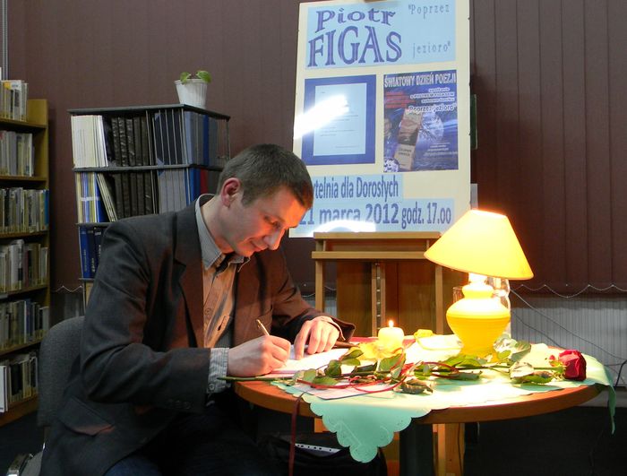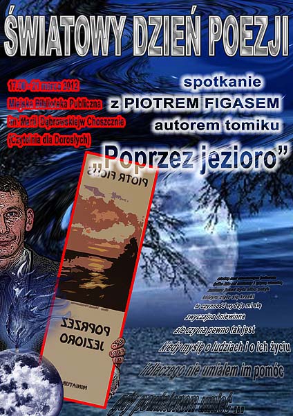 21 marca o godzinie 17.00 w ¦wiatowym Dniu Poezji spotkamy siê z Piotrem Figasem - autorem tomiku "Poprzez jezioro", a na co dzieñ nauczycielem jêzyka polskiego w Zespole Szkó³ nr 2 w Choszcznie