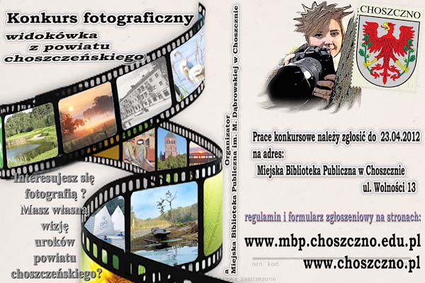 Zapraszamy do udzia³u w kolejnym, pi±tym ju¿ konkursie fotograficznym, promuj±cym uroki ziemi choszczeñskiej. Tym razem tematem jest WIDOKÓWKA Z POWIATU CHOSZCZEÑSKIEGO.
