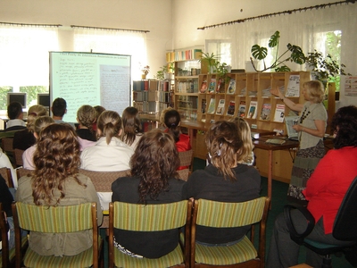 13 maja Cecylia Judek, sekretarz naukowy Ksi±¿nicy Pomorskiej w Szczecinie spotka³a siê w naszej Bibliotece z m³odzie¿± z Zespo³u szkó³ Nr 1 im. Boles³awa Krzywoustego w Choszcznie.