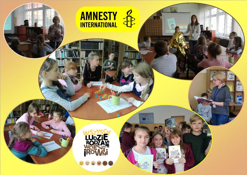 Filia Publiczna skorzystała z zaproszenia do udziału w projekcie autorstwa Amnesty International „Wszyscy ludzie rodzą się wolni i równi!” Dzięki tej akcji od 19 do 20 października w naszej bibliotece odbyły się zajęcia z edukacji praw człowieka, w których uczestniczyli uczniowie klas IV SP Nr 1 w Choszcznie. Nasze spotkanie inspirowane było książką Rafała Witka „Chłopiec z Lampedusy”. Ta znakomicie napisana, pełna subtelnych ilustracji, podejmuje bardzo trudne i ważne tematy. Wojna, ucieczka, bieda, niebezpieczeństwo, ale również przyjaźń, bezinteresowna pomoc i zaufanie. To wszystko pojawia się w książce Rafała Witka. W trakcie czytania rodzą się w głowie ważne pytania. Jednym z nich jest: Kto pomaga uchodźcom? Kto powinien to robić? Co można robić, żeby takich dzieci jak Tandżin, które ryzykują życiem, żeby dotrzeć w bezpieczne miejsce, nie było? Na te pytanie i wiele innych próbowaliśmy znaleźć odpowiedź w trakcie naszego spotkania.