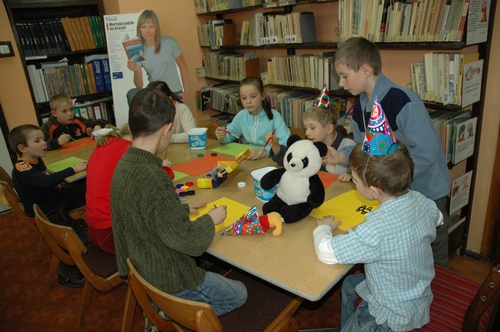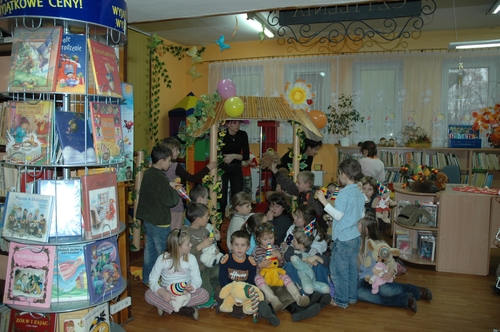 Spotkanie rozpoczęło się przytoczeniem dzieciom historii Pluszowego Misia, a następnie wyborem imienia dla ulubieńca dzieci. Przeprowadzono głosowanie i nowy lokator Kącika dla Dzieci otrzymał imię TEDI. Później biblioteczny miś Tedi zaprosił wszystkich na urodzinowy tort i małe „co nieco”