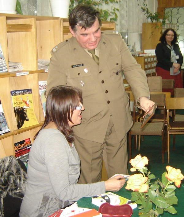 Miłą niespodzianką dla Barbary Kosmowskiej, była obecność szkolnego kolegi na sali, majora Andrzeja Szutowicza, który podarował pisarce archiwalne zdjęcie Bytowa - ich rodzinnej miejscowości.