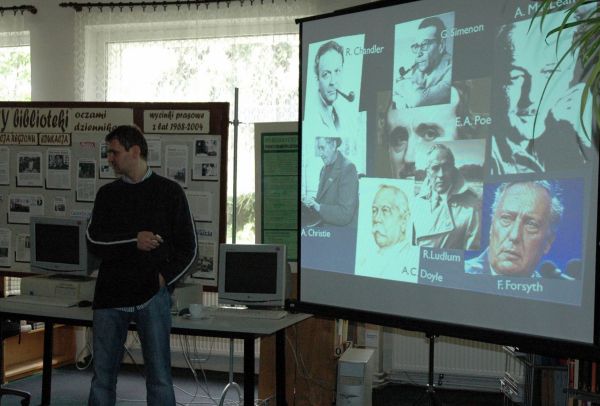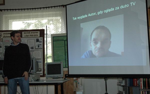 Własne pasje, dorobek literacki i plany wydawnicze przedstawił w ciekawy sposób przy pomocy prezentacji multimedialnej pokazując przy tym swoje zacięcie kabaretowe.