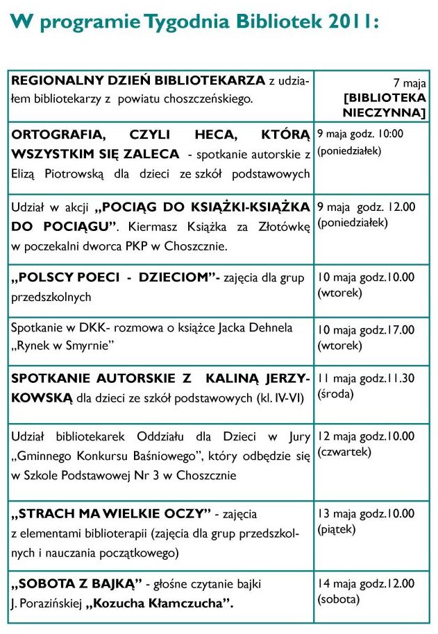 Program w Tygodniu Bibliotek 2011