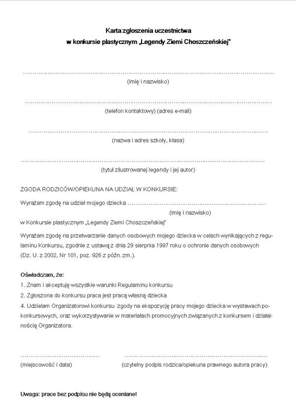 - konkurs skierowany jest do uczniów klas IV-VI szkół podstawowych z terenu powiatu choszczeńskiego