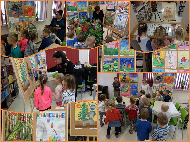 Podczas zajęć dzieci poznawały sekrety książek i biblioteki, dowiedziały się jak funkcjonuje biblioteka oraz na czym polega praca bibliotekarza. Po zajęciach przedszkolaki obejrzały wspaniałą wystawę prac plastycznych wykonanych przez uczniów klas starszych na Wojewódzki Przegląd Twórczości Zespołów Plastycznych Dzieci i Młodzieży pt. „Okładka mojej ulubionej książki”.