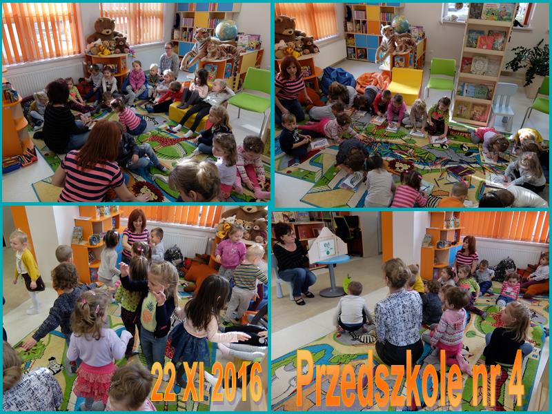 W czwartym tygodniu listopada dzieci z Przedszkola nr 4 wybrały się z wizyt± do Miejskiej Biblioteki Publicznej w Choszcznie, gdzie mogły zobaczyć niezwykły japoński teatrzyk Kamishibai. Przedszkolaki po raz pierwszy spotkały się z tak± form± czytania, toteż na pocz±tku spotkania zastanawiały się w jaki sposób drewniana skrzynka stanie się teatrzykiem. Wszystko wyja¶niło się w momencie, gdy wspólnie z pani± bibliotekark± wypowiedziały zaklęcie: „Abrakadabra, hokus pokus, teatrzyku otwórz się!”. Wtedy „kurtyna podniosła się” i maluchy mogły obejrzeć i wysłuchać przygód wesołych „Groszków”, natomiast starszaki poznały Walentynkę i jej perypetie na rowerowej wycieczce.